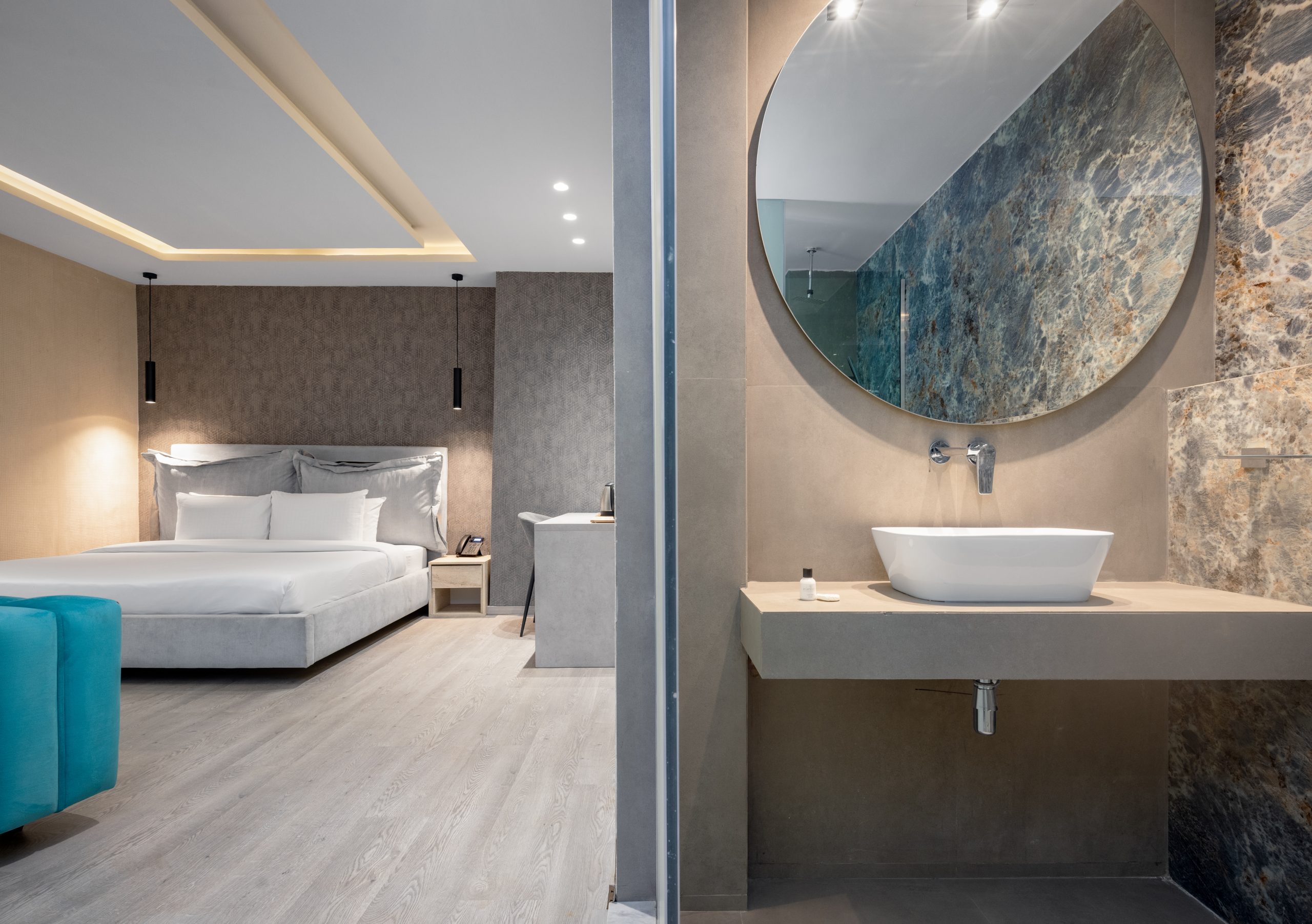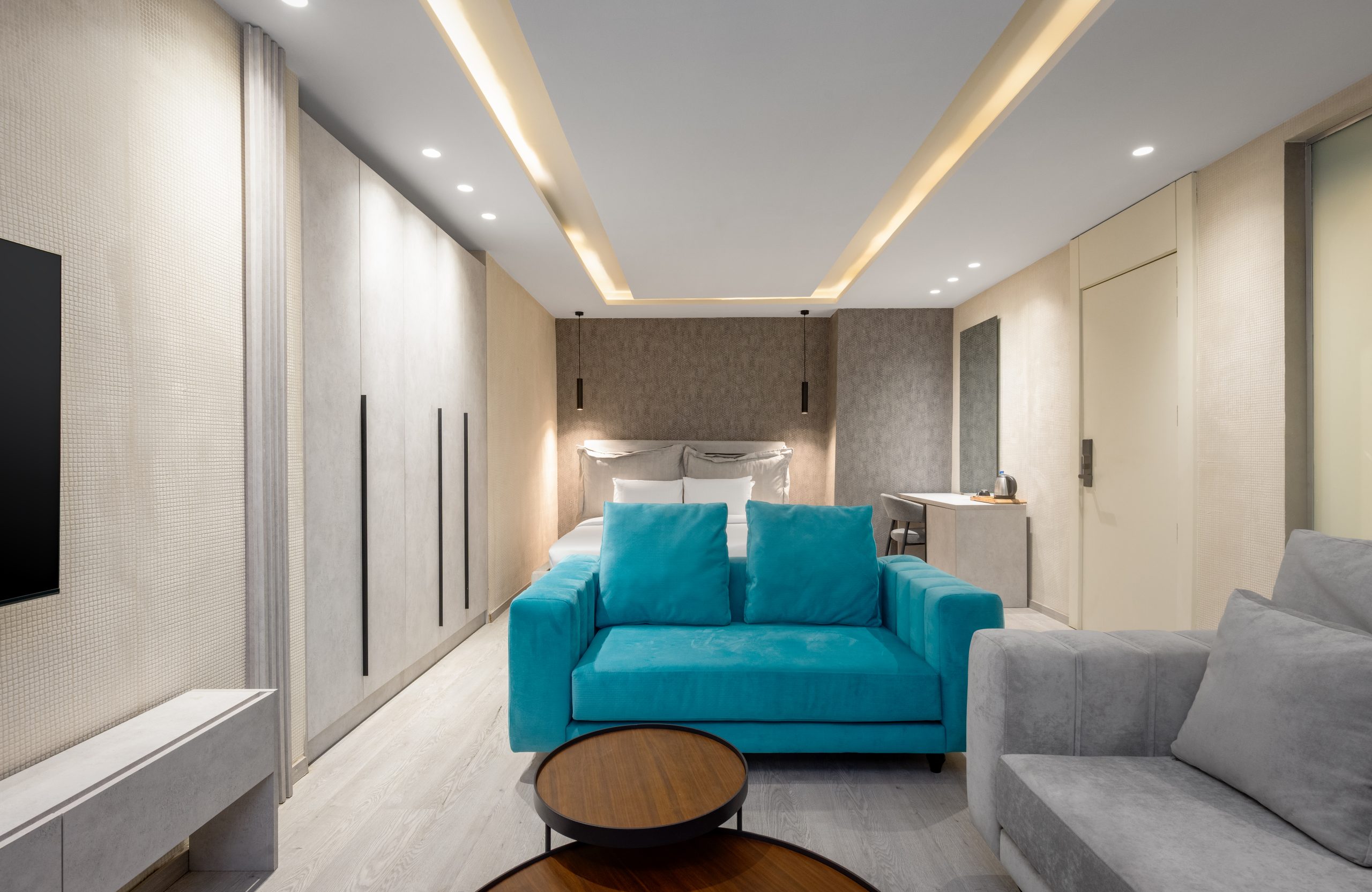 The Suite features an open-plan design that blends living and sleeping areas into one expansive space. With comfortable seating and ample room to relax or work, it is ideal for extended stays.
